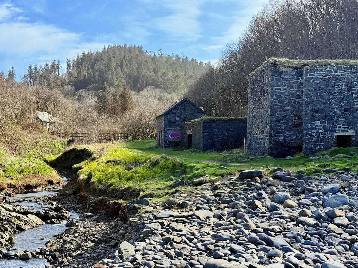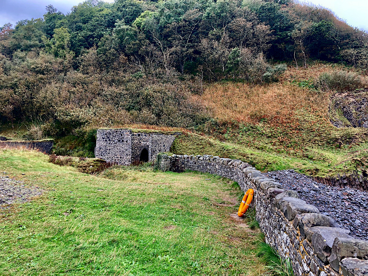 As you approach the coast, you’ll spot the cottage at the original Mill location. It’s in use as a private residence, so please be mindful to not disturb the house. Further down, you’ll find the Limers Cottage, coal shed, and kiln, which are worth exploring. Beyond the kiln on the left you will find the inclined plane leading up to the top of the lime kiln, take care as the deep brick lined pot is unfenced and overgrown and hard to see.